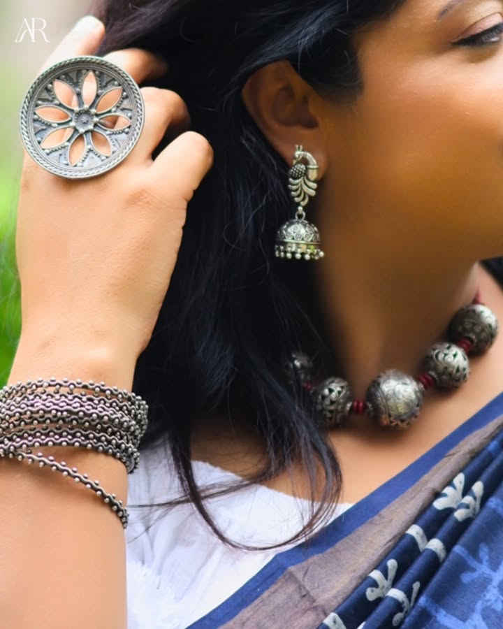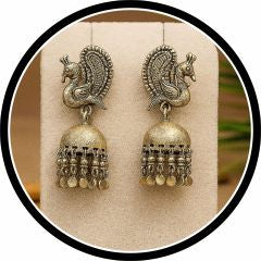 Peacock Design 925 Silver Jhumka Earrings – Handcrafted Ethnic Jewelry